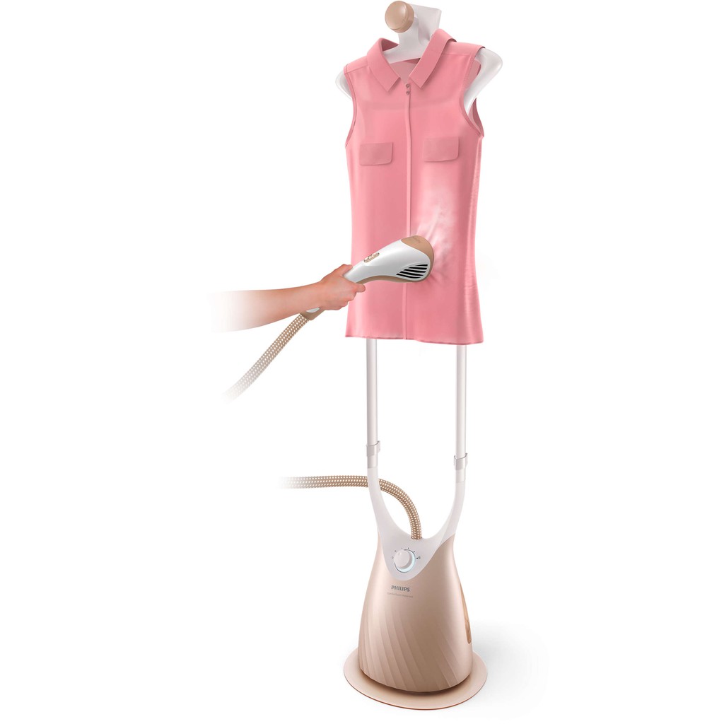 Bàn là đứng hơi nước Philips GC576 với công nghệ đầu hút AirStretch cho hơi phun mạnh, mặt đế ủi hơi nước SmartFlow làm nóng bằng luồng hơi phun, duy trì nhiệt độ an toàn, ngăn hình thành vết ướt. 5 chế độ hơi phun cho các loại quần áo khác nhau.Giữ quần áo cố định