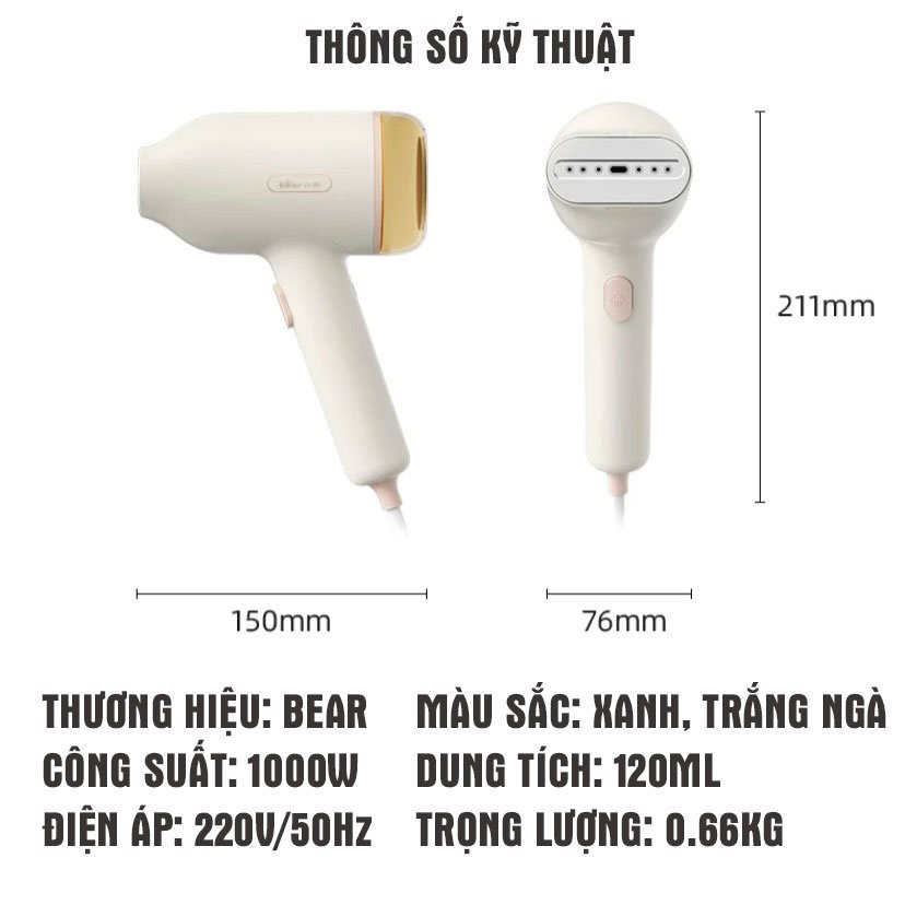 Giới thiệu Bàn là hơi nước Bear, Bàn ủi hơi nước cầm tay - Hàng chính hãng - Công suất 1000W - BẢO HÀNH 12 THÁNG