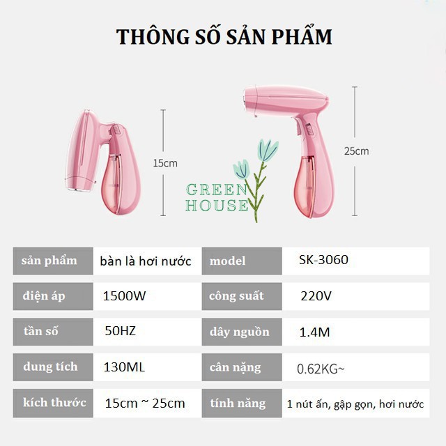 Bàn là hơi nước cầm tay gấp gọn Sokany SK-3060 tiện dụng*MÔ TẢ SẢN PHẨM: