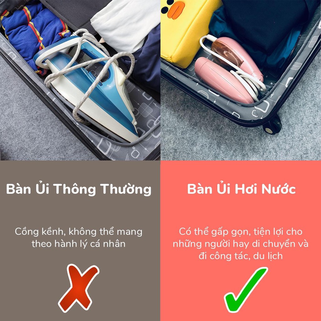 - Bàn là hơi nước phiên bản gấp gọn dễ dàng mang theo khi đi du lịch, đi công tác mà không chiếm nhiều diện tích túi đồ của bạn