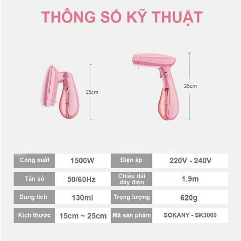 Bàn Là Hơi Nước Cầm tay Gấp Gọn SOKANY SK-3060 Màu Hồng Xinh Xắn