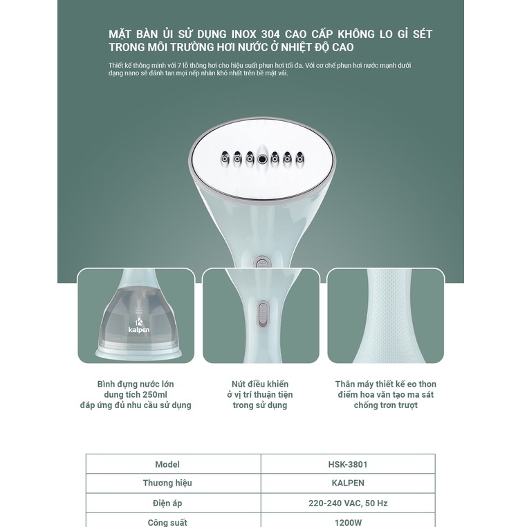 Bàn là hơi nước cầm tay Kalpen HSK-3801, Bàn ủi hơi nước mini công suất 1200W hàng chính hãng bảo hành 24 tháng