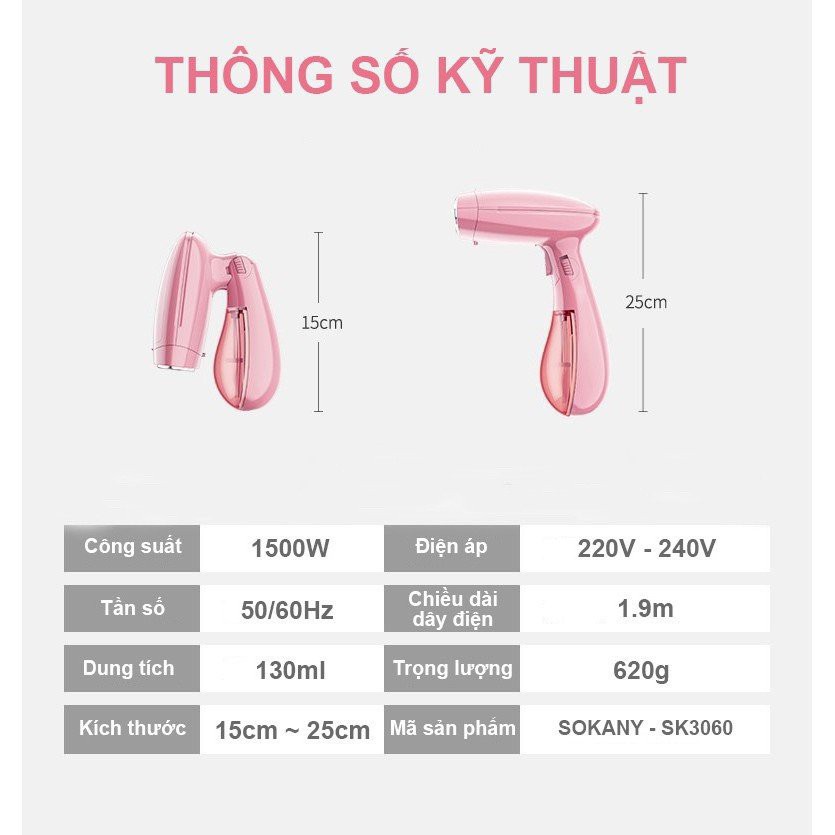 👉Thiết kế cầm tay chắc chắn, dễ sử dụng, có thể ủi phẳng quần áo ngay cả khi đang treo
