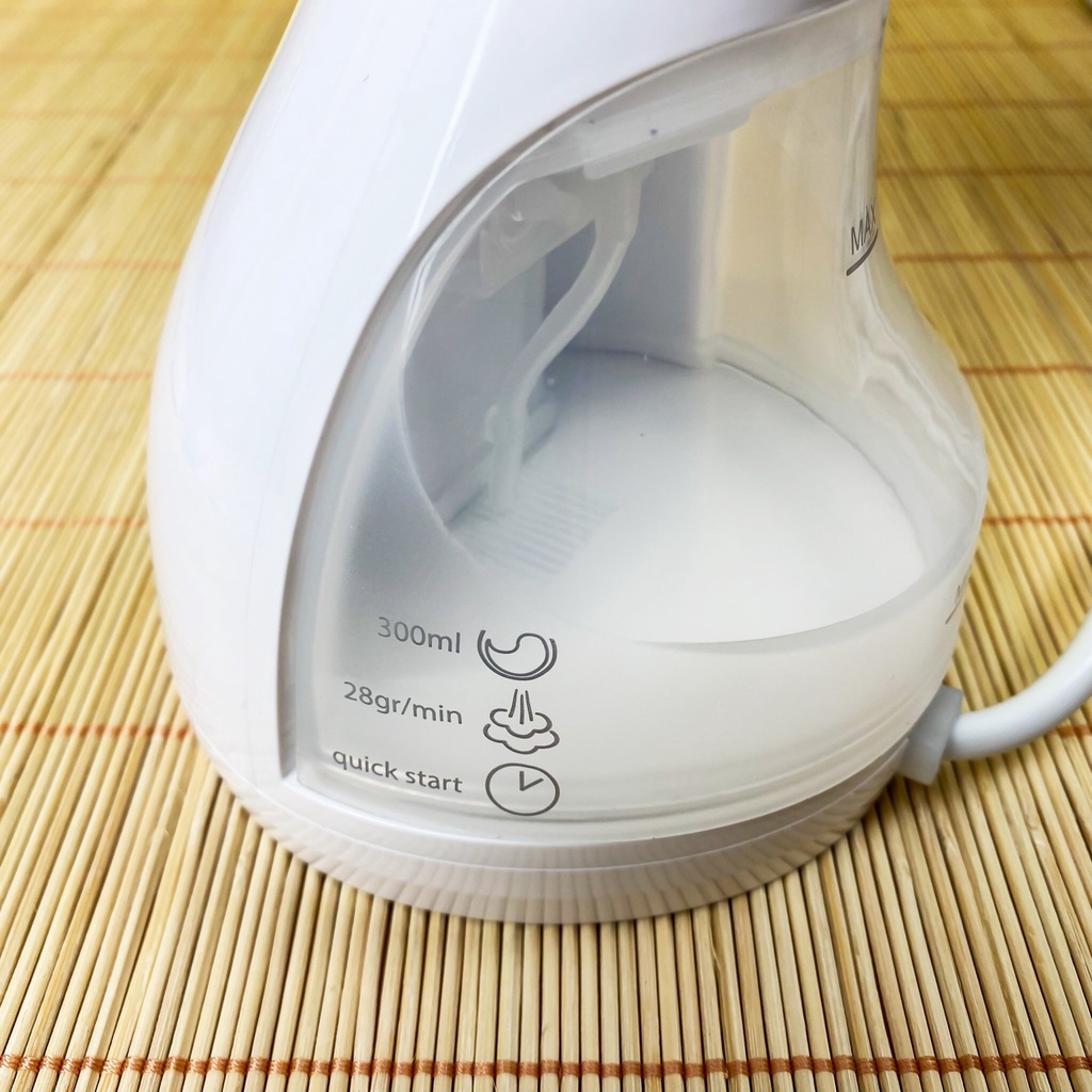 - Làm nóng nhanh chóng chỉ 30s. Dung tích bình chứa 300ml dễ tháo rời giúp dễ dàng cho thêm nước khi là ủi.