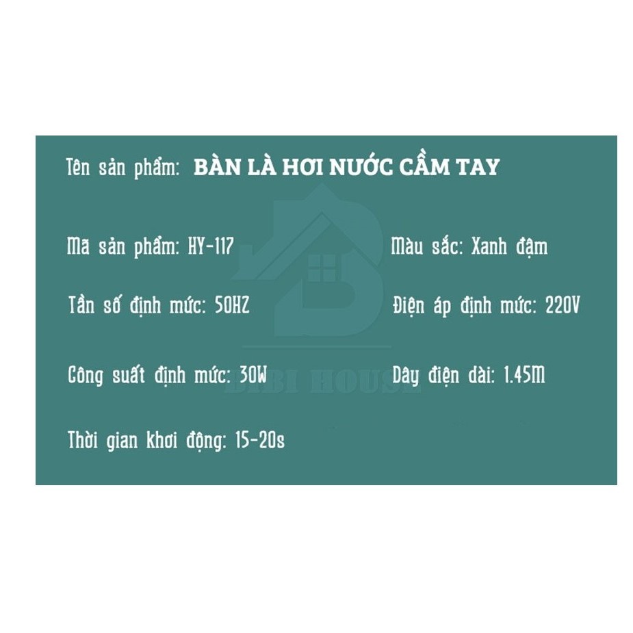 Bàn là hơi nước cầm tay mini , máy ủi hơi nước cầm tay công suất 33W MILOHOUSE 202THÔNG SỐ KỸ THUẬT: