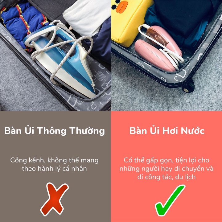–Bàn là hơi nước cầm tay Cao Cấp phiên bản gấp gọn dễ dàng mang theo khi đi du lịch, đi công tác mà không chiếm nhiều diện tích túi đồ của bạn.