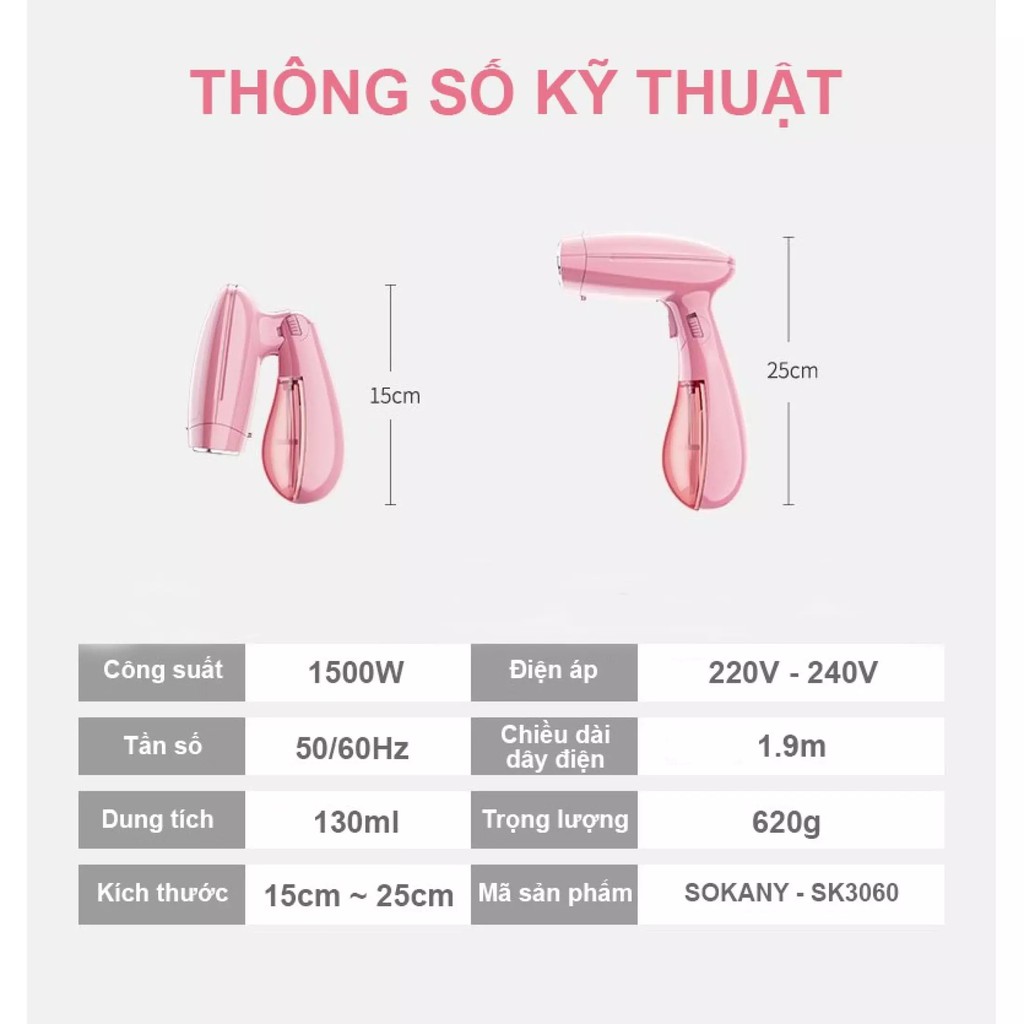Bàn là hơi nước cầm tay Sokany Sk3060, bàn ủi hơi nước công suất 1500W, bình chứa nước 120ml