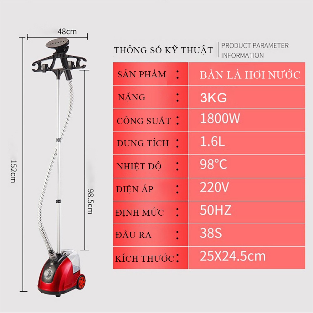 Giới thiệu Bàn là hơi nước cây đứng, bàn là hơi nước phù hợp với nhiều loại vải, công suất 1800W, bảo hành 2 năm