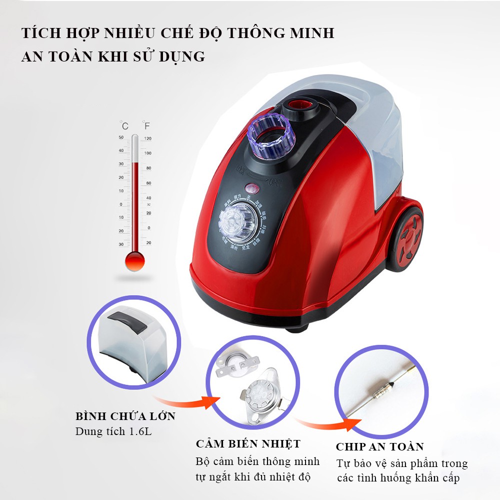 Bàn là hơi nước cây đứng, bàn là hơi nước phù hợp với nhiều loại vải, công suất 1800W, dung tích 1.8L