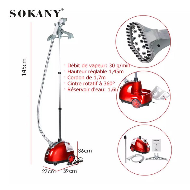 - Thông số kỹ thuật của Bàn ủi hơi nước đứng Sokany: