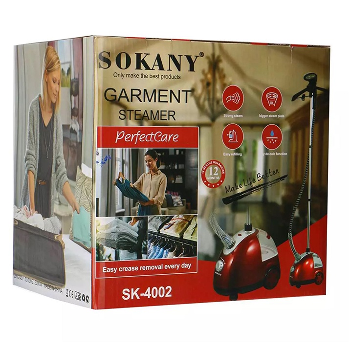 Bàn ủi Sokany: thiết kế dạng đứng, đi kèm móc treo quần áo giúp bạn dễ dàng treo những trang phục như áo, váy, quần lên để việc là quần áo được dễ dàng hơn. Trụ đứng có thể chỉnh với nhiều chiều cao khác nhau để phù hợp với bộ trang phục bạn cần là.