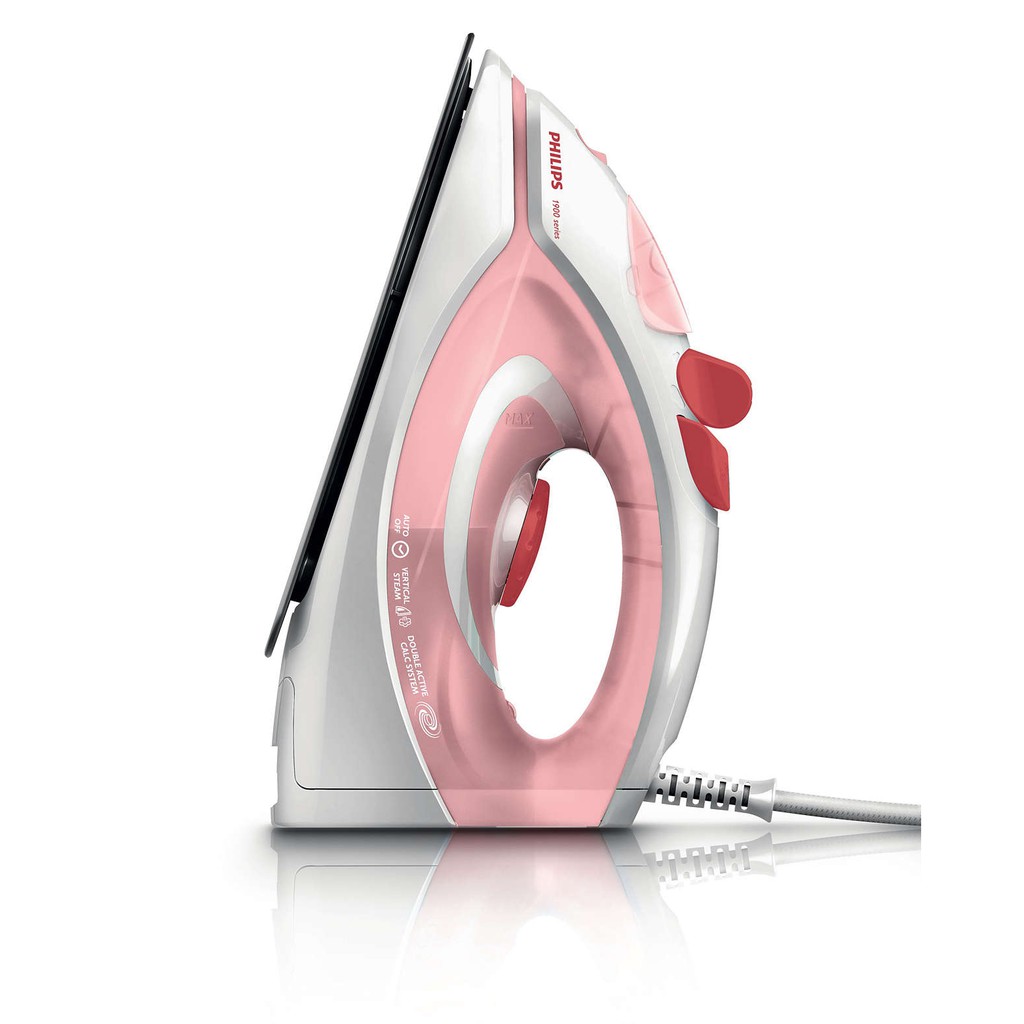 - Lớp vỏ ngoài của bàn ủi phủ màu ấn tượng bắt mắt, mũi bàn ủi nhọn thích hợp ủi những vùng khó ủi.