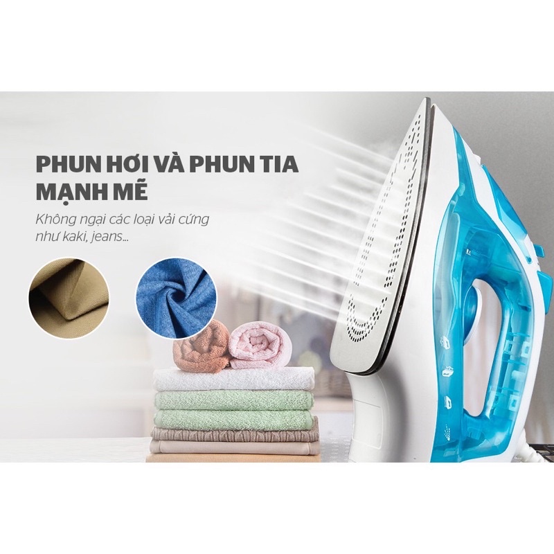 Bàn là có 2 chức năng phun hơi và phun nước, là phẳng cả những loại vải dày và những nếp nhăn cứng đầu nhất.