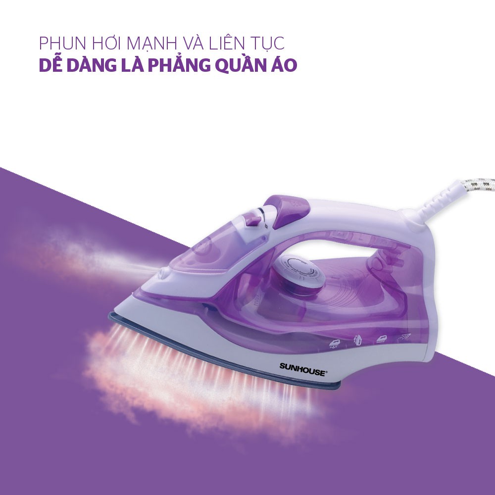 Thiết Bị Điện Gia Dụng > Thiết bị điện gia dụng nhỏ > Bàn là khô & Hơi nước || Bàn là hơi SUNHOUSE SHD2063P màu tímCòn hàng