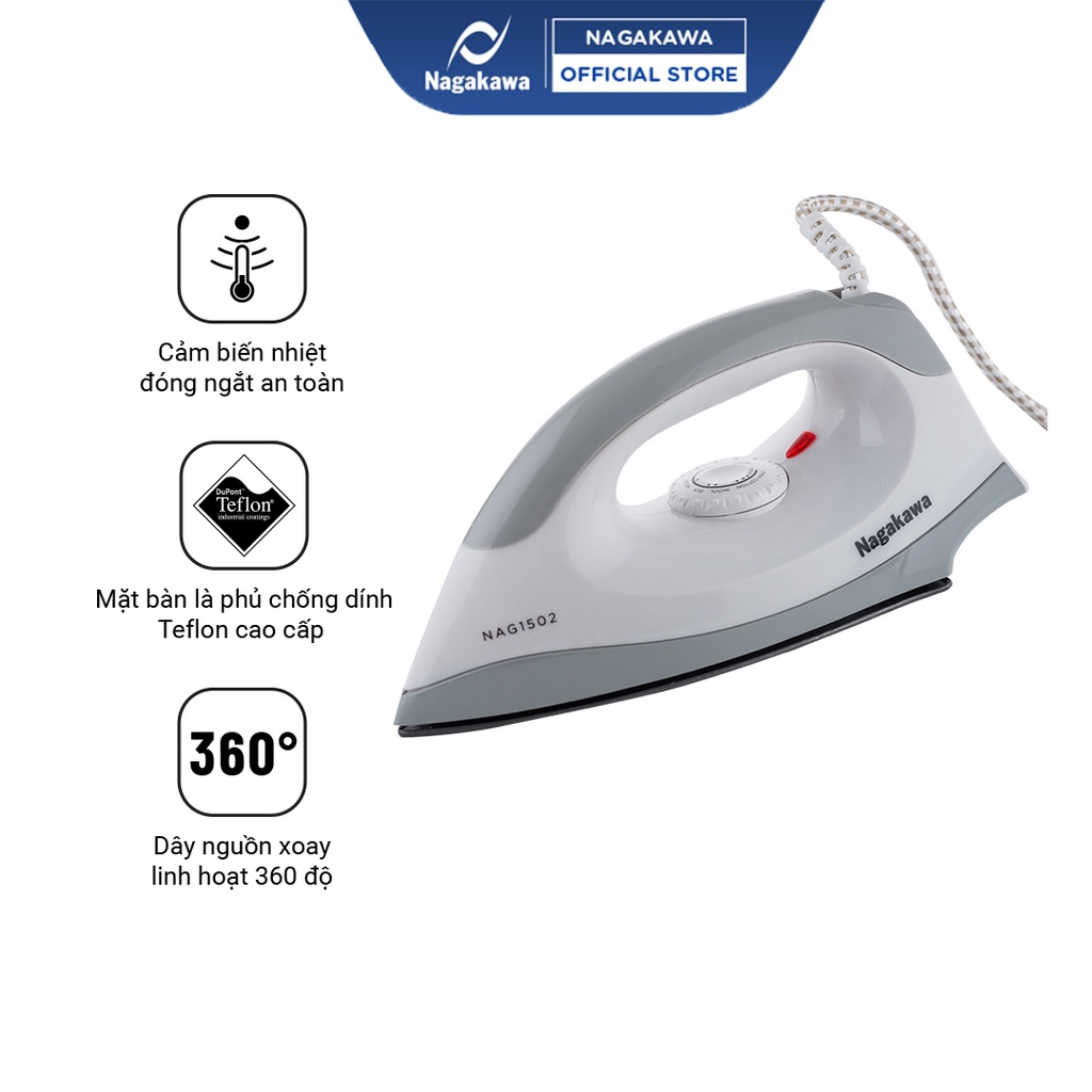 Giới thiệu Bàn là khô Nagakawa NAG1502 (Xám ghi)