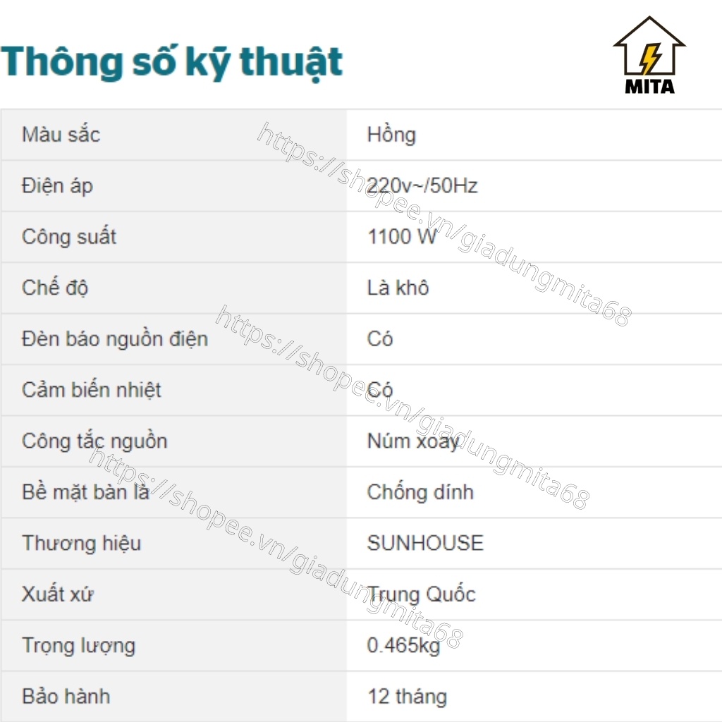 Giới thiệu Bàn là khô SUNHOUSE SHD1072 - Bàn là Sunhouse - Bàn ủi - MITA