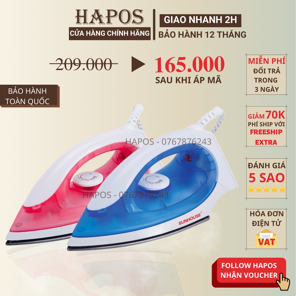 Giới thiệu Bàn là khô Sunhouse SHD1072 Bàn ủi trượt êm trên mọi chất liệu cám biến nhiệt an toàn - HAPOS