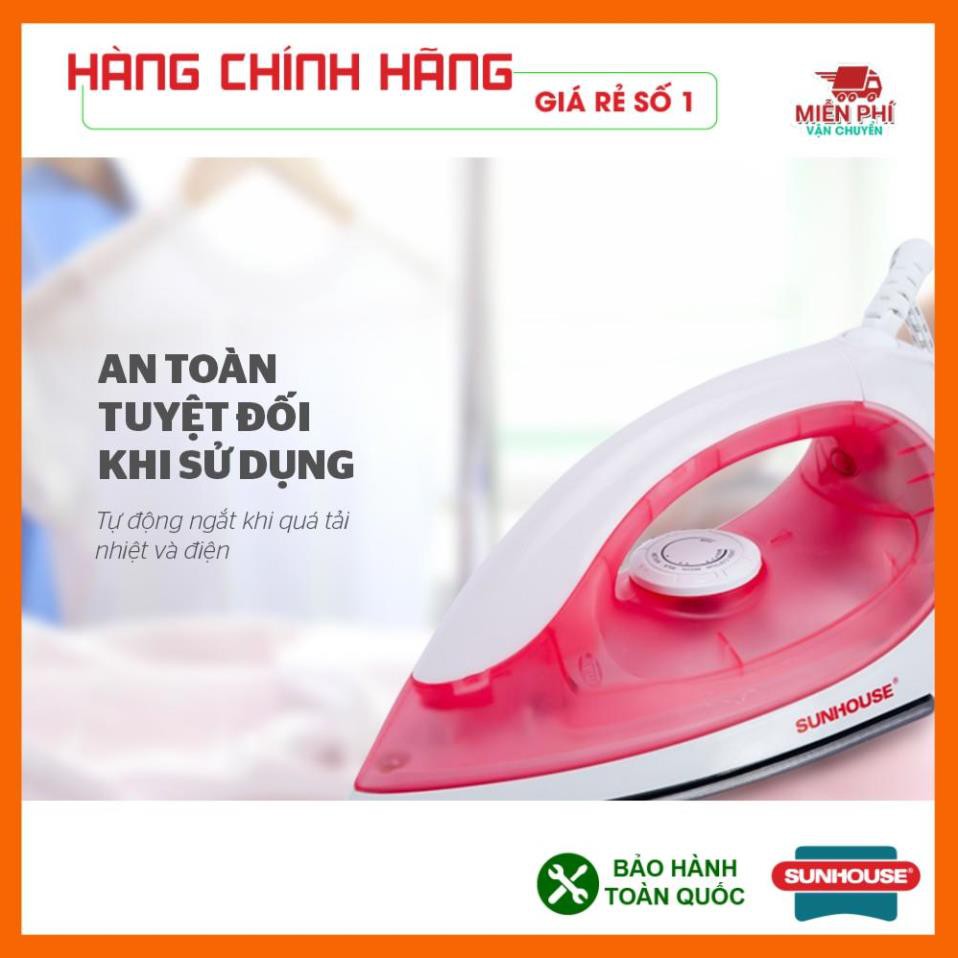 Thiết Bị Điện Gia Dụng > Thiết bị điện gia dụng nhỏ > Bàn là khô & Hơi nước || BÀN LÀ SUNHOUSE SHD1072, BÀN ỦI SUNHOUSE SHD1072, CÔNG SUẤT 1100W, CÔNG TẮC NGUỒN NÚM XOAY.Còn hàng