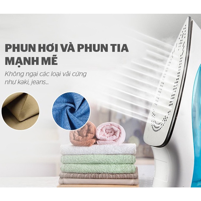 -Phun Tia giúp tạo ra hơi nước đều đặn làm ẩm vải, làm cho việc ủi các nếp nhăn dễ dàng hơn.