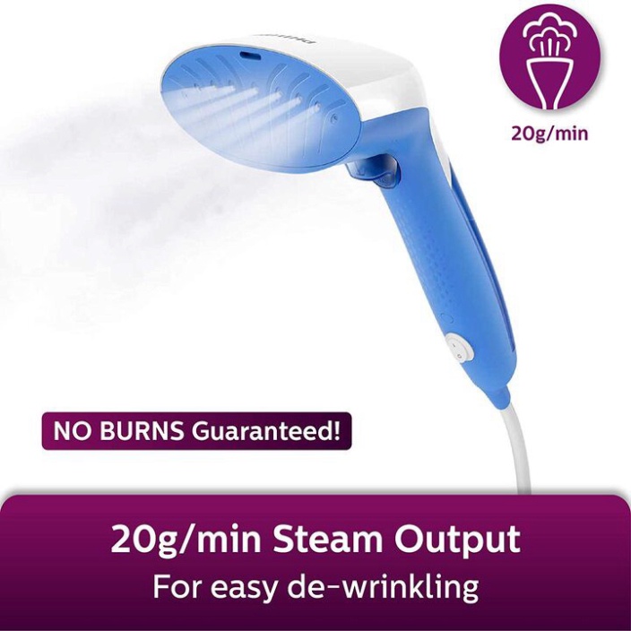 - Bàn ủi hơi nước cầm tay nhẹ và thuận tiện để sử dụng nhờ thiết kế gọn gàng và tiện dụng. Chỉ cần nhấn nút và nhanh chóng loại bỏ nếp nhăn bằng luồng hơi nước liên tục.