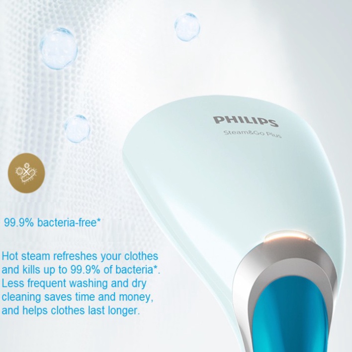- Hơi phun nóng giúp làm mới quần áo và diệt tới 99,9% vi khuẩn*. Số lần giặt và hong khô giảm đi, tiết kiệm thời gian và chi phí, đồng thời giúp quần áo bền lâu hơn.