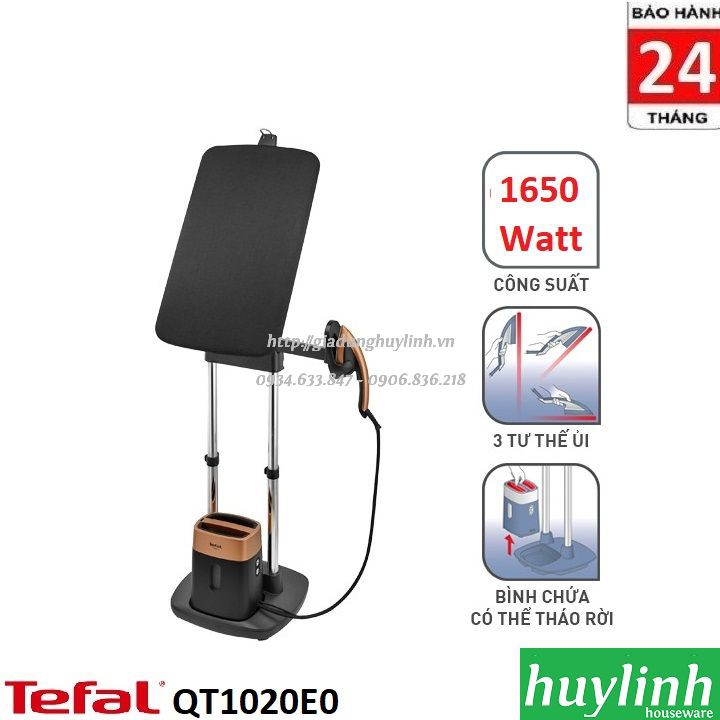 Bàn ủi hơi nước đứng Tefal QT1020E0 với công suất 1650W, lực phun hơi mạnh và có bàn để ủi đa năng giúp bạn thuận tiện hơn rất nhiều trong việc là ủi quần áo.Huy Linh phân phối và bảo hành chính hãng tại Tefal Việt Nam