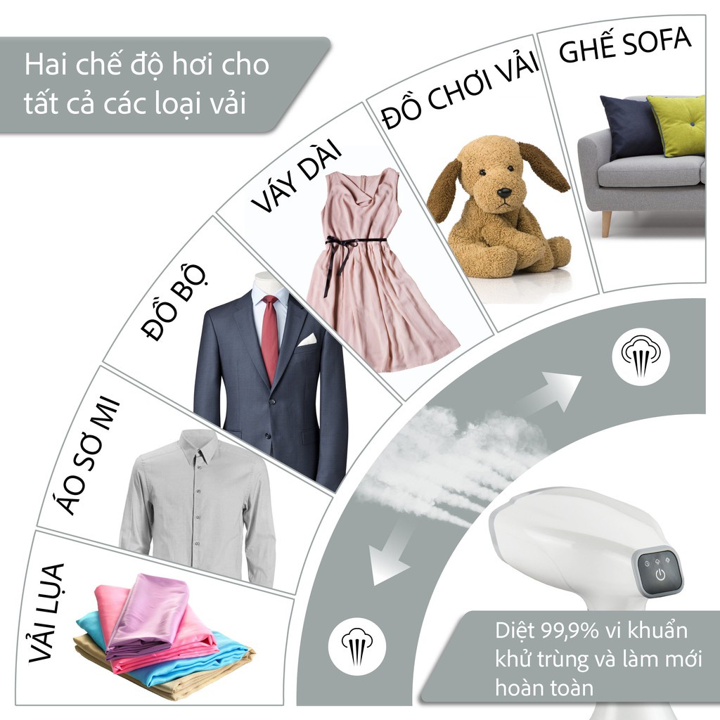 - Dễ dàng ủi bay mọi vết nhăn, hơi nước được phun tỏa đều ra thấm đều và làm ẩm làm mịn từng sợi vải, giúp việc là ủi thẳng các vết nhăn trên quần áo một cách dễ dàng hơn