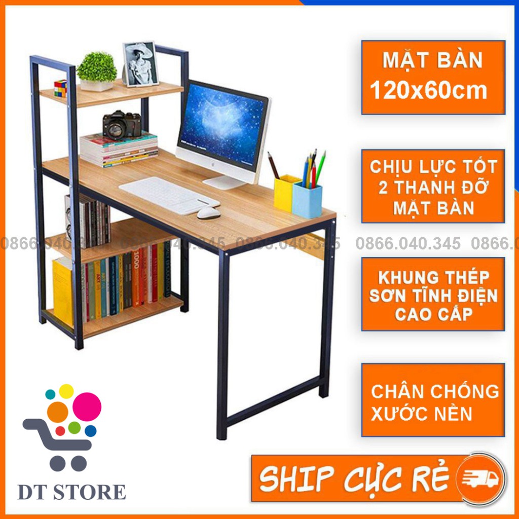 Nhà cửa & Đời sống > Nội thất > Bàn || Bàn làm việc 1,2m &1m khung sắt kèm giá sách sơn tĩnh điện chịu lực cao, bàn vi tính hoặc bàn học, làm việc lắp rápCòn hàng