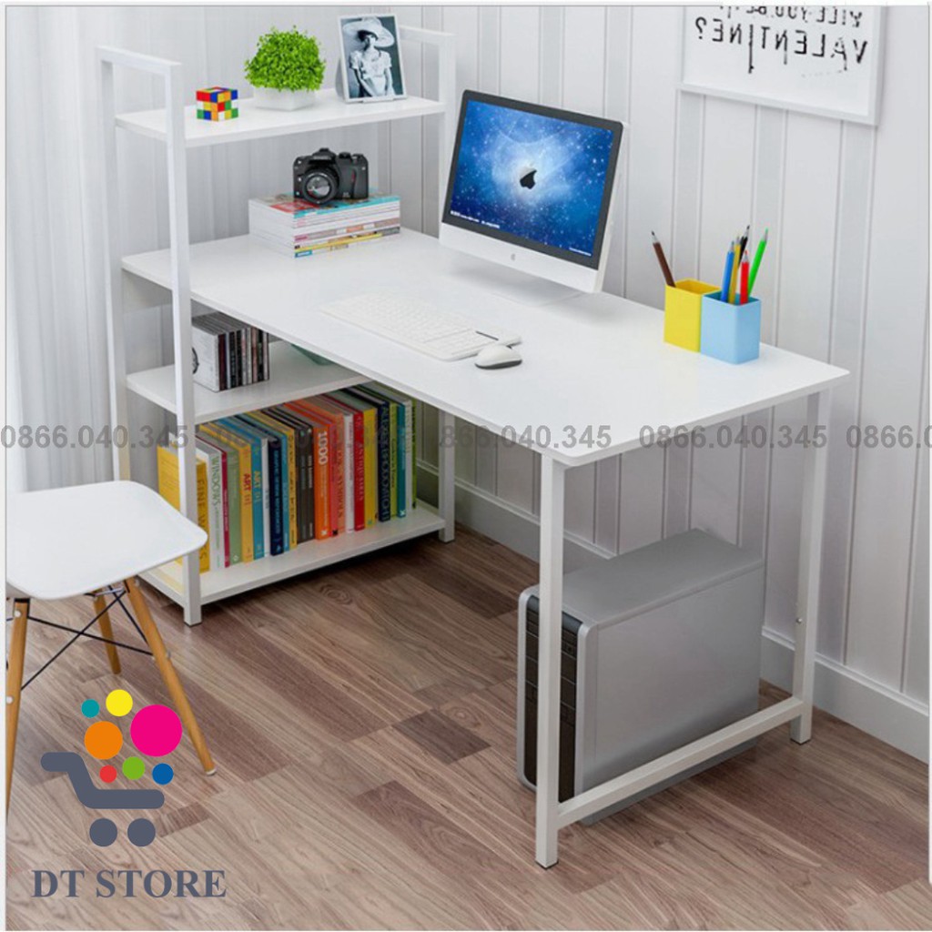BÀN LÀM VIỆC BÀN HỌC KÈM GIÁ SÁCH - HÀNG LẮP RÁP - ĐẸP - GIÁ RẺ - CHẤT LƯỢNG CAOBàn làm việc, bàn học kết hợp với giá sách là một trong những mẫu bàn được nhiều người ưa chuộng hiện nay bởi thiết kế rất trẻ trung,tiện dụng và hiện đại. Không chỉ vậy, nếu biết cách sắp xếp, bàn làm việc kèm kệ sách còn là món đồ nội thất giúp không gian nhà bạn thêm ấn tượng và sống động hơn. Bàn làm việc khung sắt kèm giá sách sơn tĩnh điện chịu lực cao, bàn vi tính hoặc bàn học, làm việc lắp ráp dễ dàng và vô cùng chắc chắn.