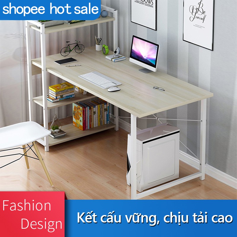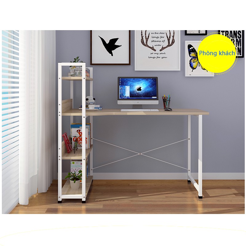 Bàn làm việc bàn học bàn máy tính kết hợp kệ sách kệ để đồ khung sắt tiện lợi tiết kiệm diện tích - FU94