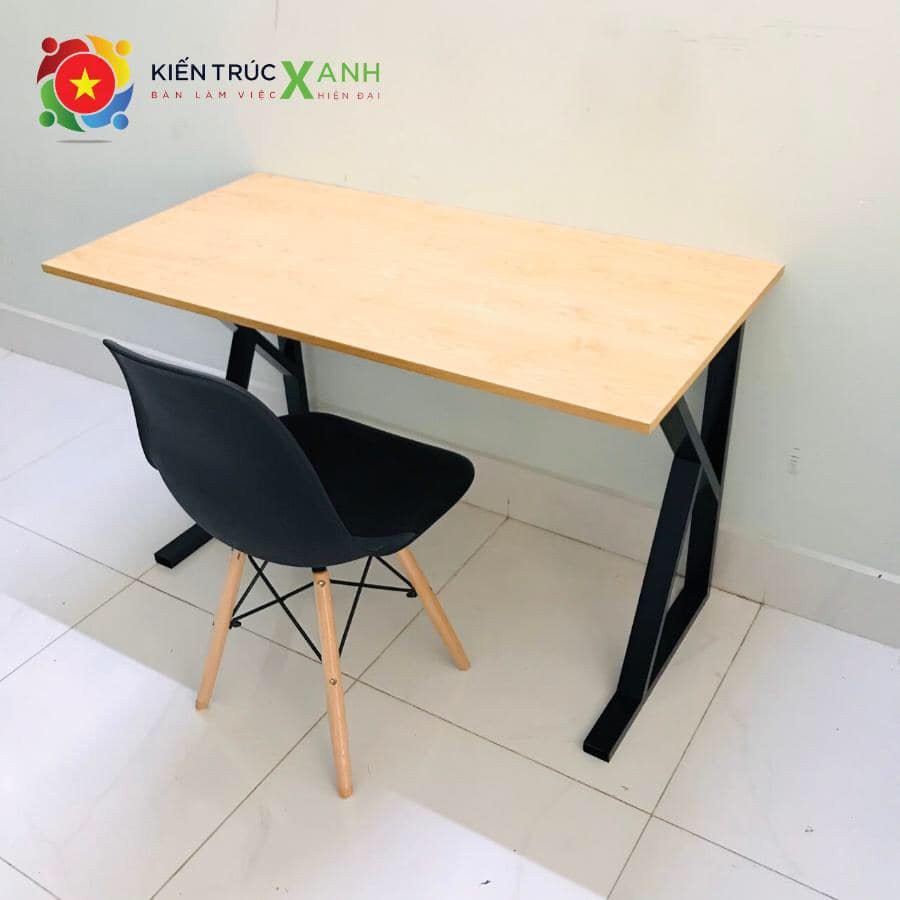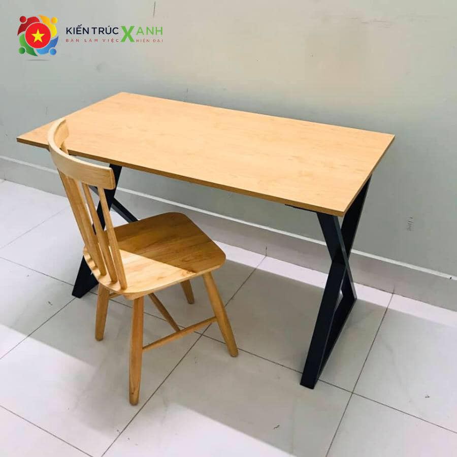 Bàn làm việc, bàn học hiện đại X lắp ráp (R60*D120*C75cm) mặt gỗ MDF màu vàng VÂN GỖ SỒI dày 17mm chân sắt chắc chắn