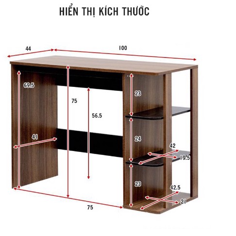 - Kích thước: Mặt bàn dài 1m sâu 44cm cao 75cm
