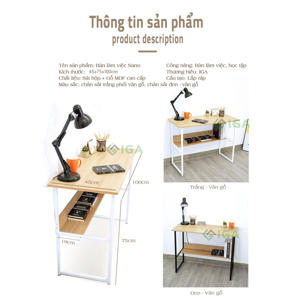 Nhà cửa & Đời sống > Nội thất > Bàn || Bàn làm việc, bàn học IGA kèm kệ sách hiện đại khung thép sơn tĩnh điện - GM17Còn hàng