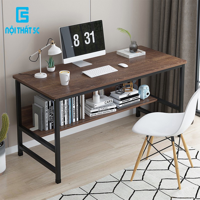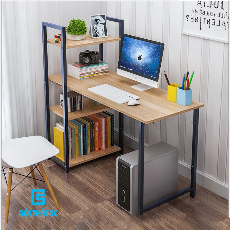 Bàn làm việc, bàn học khung sắt kèm giá sách 4 tầng sơn tĩnh điện chịu lực cao, lắp ráp dễ dàng thiết kế hiện đại