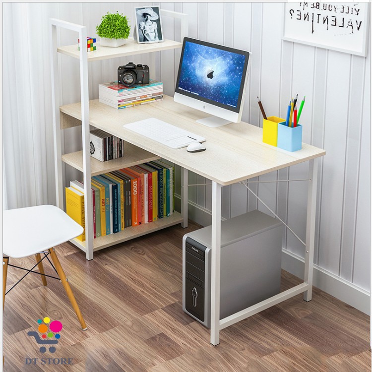 Bàn làm việc, bàn học kích thước 1,2m &1m chân sắt sơn tĩnh điện có giá sách lắp ghép dễ dàng full phụ kiện