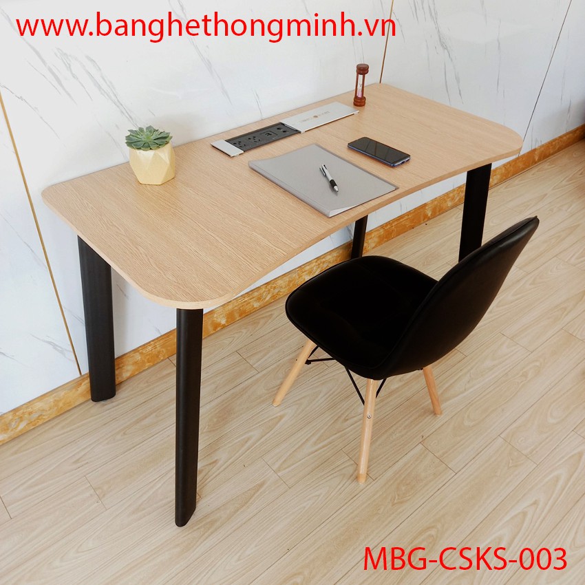 - Tên sản phẩm: Bàn mặt gỗ MDF + chân sắt oval khung sắt X tích hợp sạc USB & ổ cắm 220V