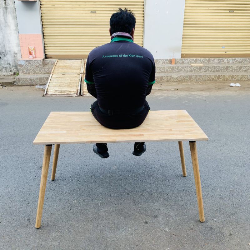 ✔Mặt bàn làm từ gỗ GỖ CAO SU phủ melamine chống xước, thấm nước và cong vênh do thời tiết
