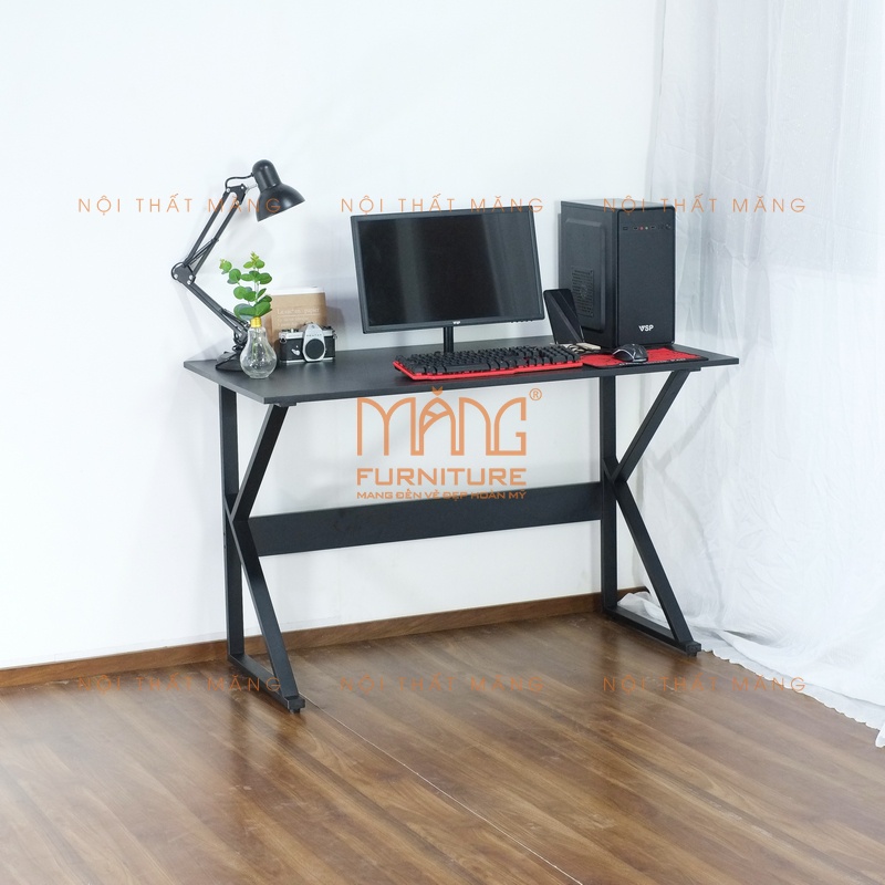 Được lấy ý tưởng từ chử K để thiết kế nên phần chân. Sử dụng sắt hộp vuông 20 x 40mm được sơn tĩnh điện bền đẹp chắc chắn. Bàn K của Măng có thêm phần bạ gỗ giằng ở dưới chân cho không rung lắc khi sử dụng. Mặt bàn có 2 cở diện tích rộng cho bạn thoải mái làm việc, học tập. Có 2 cây sắt vuông 20 x 20mm dài 100cm liên kết chân và chống công vênh mặt bàn trong quá trình sử dụng. Sự kết hợp hoàn hảo của ý tưởng thiết kế giúp bạn có được một chiếc bàn làm việc, bàn học cho học sinh, sinh viên, hay bàn game cho các game thủ hay các youtuber. Bàn có nhiều màu chân và màu mặt bàn nên có thể phối hợp với các không gian nội thất văn phòng, căn hộ, nhà ở của khách hàng. Với giá cả quá hợp lý nếu không muốn nói là rẻ. Vậy bạn còn chần chừ gì nữa.