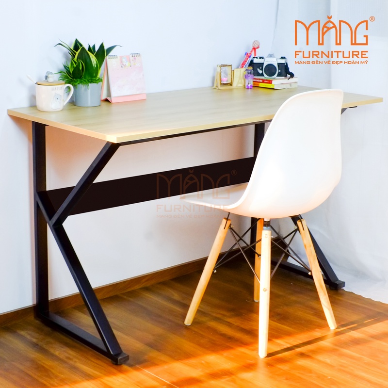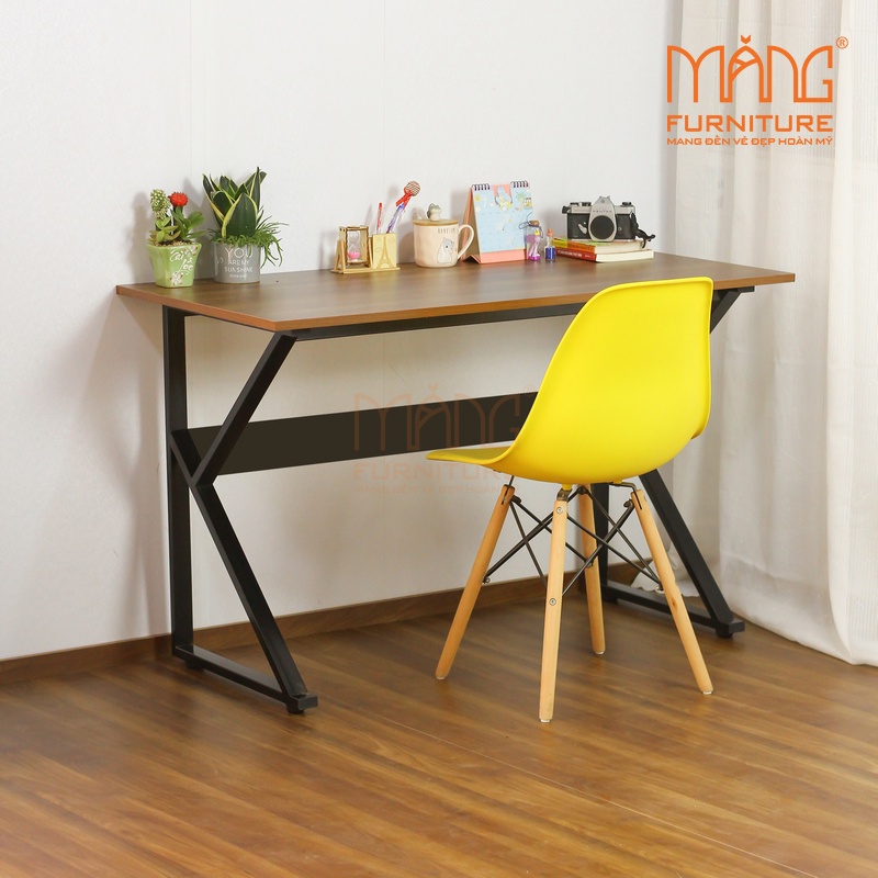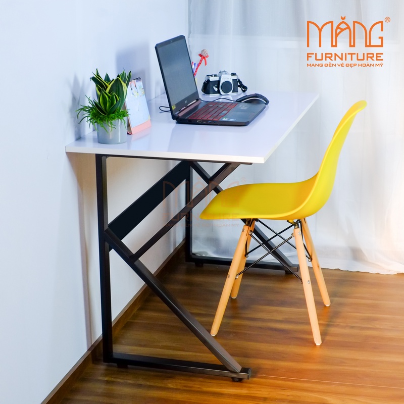 Được lấy ý tưởng từ chử K để thiết kế nên phần chân. Sử dụng sắt hộp vuông 20 x 40mm được sơn tĩnh điện bền đẹp chắc chắn. Bàn K của Măng có thêm phần bạ gỗ giằng ở dưới chân cho không rung lắc khi sử dụng. Mặt bàn có 2 cở diện tích rộng cho bạn thoải mái làm việc, học tập. Có 2 cây sắt vuông 20 x 20mm dài 100cm liên kết chân và chống công vênh mặt bàn trong quá trình sử dụng. Sự kết hợp hoàn hảo của ý tưởng thiết kế giúp bạn có được một chiếc bàn làm việc văn phòng, bàn học cho học sinh, sinh viên, hay bàn game cho các game thủ hay các youtuber. Bàn có nhiều màu chân và màu mặt bàn nên có thể phối hợp với các không gian nội thất văn phòng, căn hộ, nhà ở của khách hàng. Với giá cả quá hợp lý nếu không muốn nói là rẻ. Vậy bạn còn chần chừ gì nữa.
