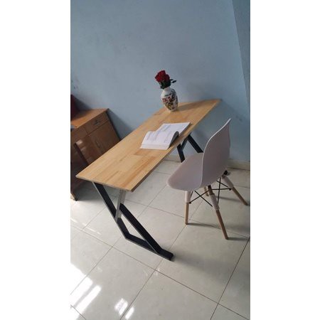 Giới thiệu Bàn làm việc chữ K lắp ráp [R60*D120*C75CM] gỗ cao su tự nhiên dày 18mm, chân sắt chắc chắn