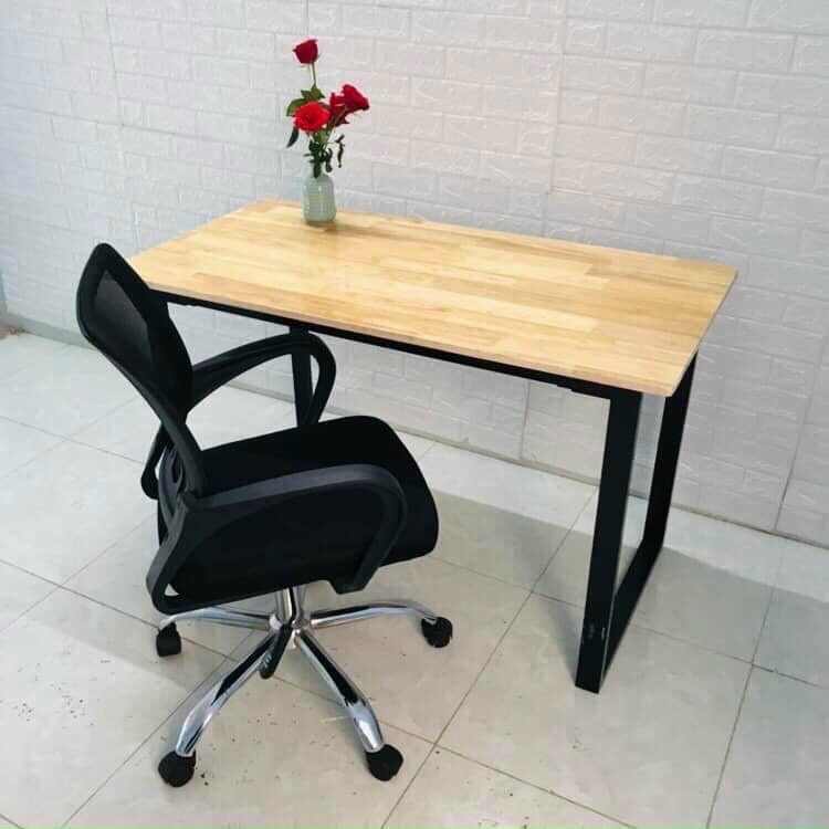 Giới thiệu Bàn làm việc chữ U lắp ráp [R60*D120*C75CM] gỗ cao su tự nhiên dày 18mm chân sắt chắc chắn