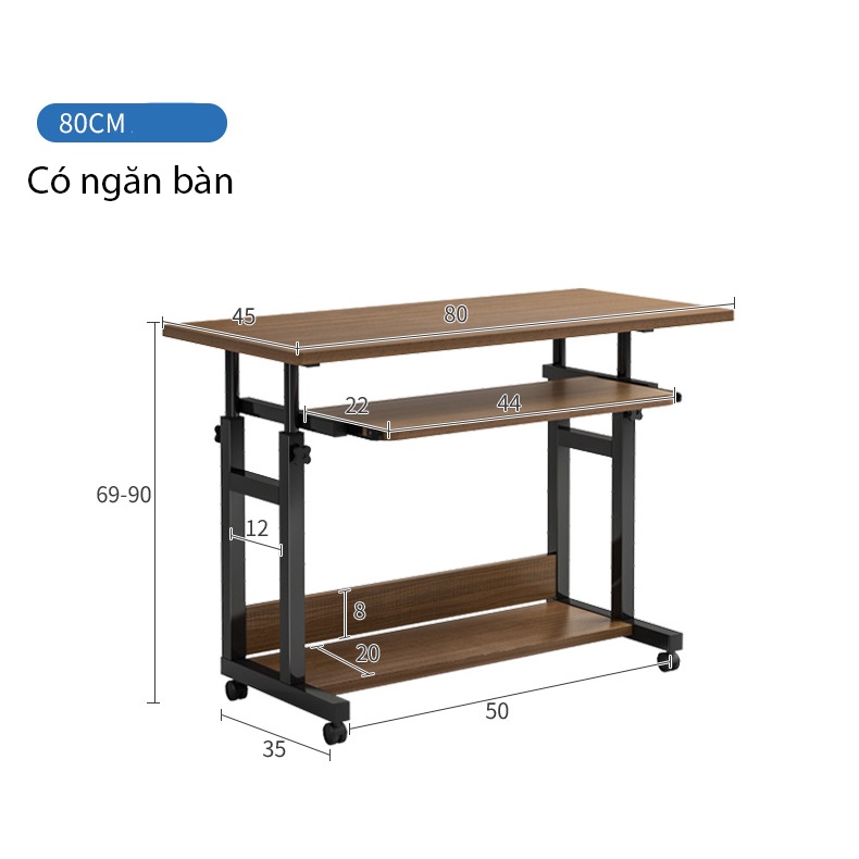 - Bàn có ngăn kéo: 80cmx45cmx(69-90)cm