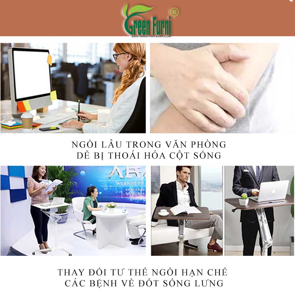 Bàn làm việc di động thông minh, Bàn làm việc nâng hạ thông minh, Kiểu dáng hiện đại năng động phù hợp làm vệc văn phòngBàn làm việc di động nâng hạ thông minh, Giúp thay đổi tư thế ngồi sang đứng làm việc dễ dàng, hạn chế các bệnh liên quan đến cột sống như thoái hóa đốt sống do ngồi làm việc lâu ngày ít vận động