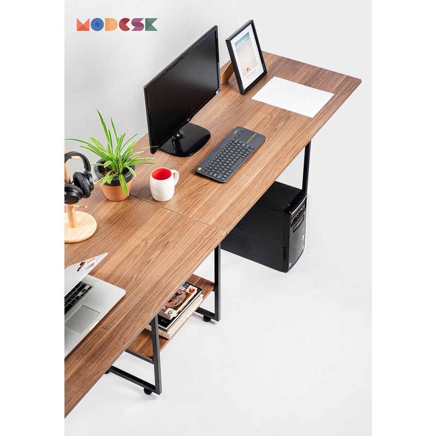 1. Mô tả sản phẩm:BÀN LÀM VIỆC ĐÔI Modesk là sự kết hợp giữa bàn và kệ vô cùng tiện lợi trong việc dùng làm bàn học, bàn làm việc và lưu trữ nhiều đồ vật. Một điểm nhấn nổi bật nữa của bàn Modesk là thiết kế bàn nối dài vô cùng độc đáo và tiện lợi, dành cho những bạn muốn không gian làm việc thoải mái và rộng