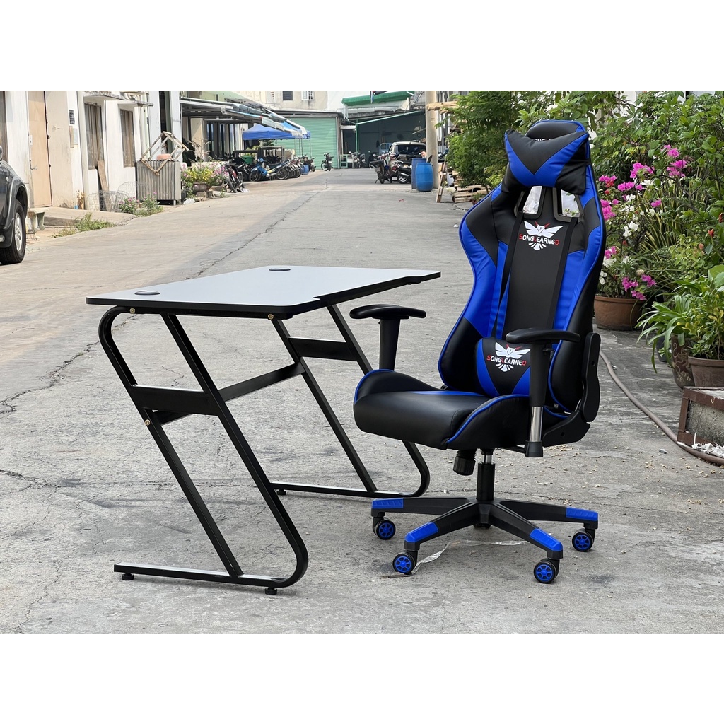 Bàn Làm Việc Gaming Chân Sắt Sơn Tĩnh Điện Mặt Gỗ MDF phủ melamine Double Z với kích thước 60×120 phù hợp cho phòng làm việc gia đìnhVới thiết kế chân sắt sơn tĩnh điện tạo sự chắc chắn cho bàn làm việc , cộng với mặt bàn sử dụng chất liệu gỗ MDF phủ melamine , mang lại vẻ đẹp sang trọng cũng như chất liệu thân thiện với môi trường , với phong cách tối giản đây là 1 mẫu bàn làm việc dễ sử dụng cho số đông thị hiếu người tiêu dùng
