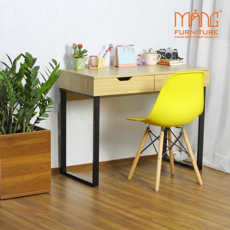 bàn làm việc gỗ chân sắt có hộc kéo dùng làm bàn trang điểm, học bài cho học sinh, sinh viên mẫu blv18