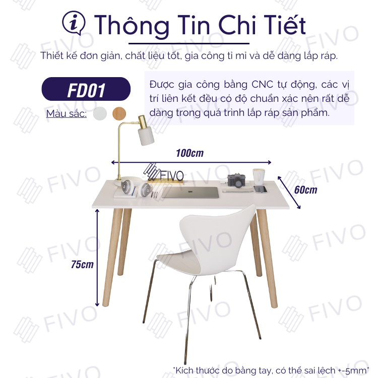 Giới thiệu Bàn Làm Việc Gỗ MDF Lõi Xanh Chống Ẩm 17mm FIVO FD01 Cao 75cm, Lắp Ráp Dễ Dàng, Tiện Dụng - Hàng Chính Hãng