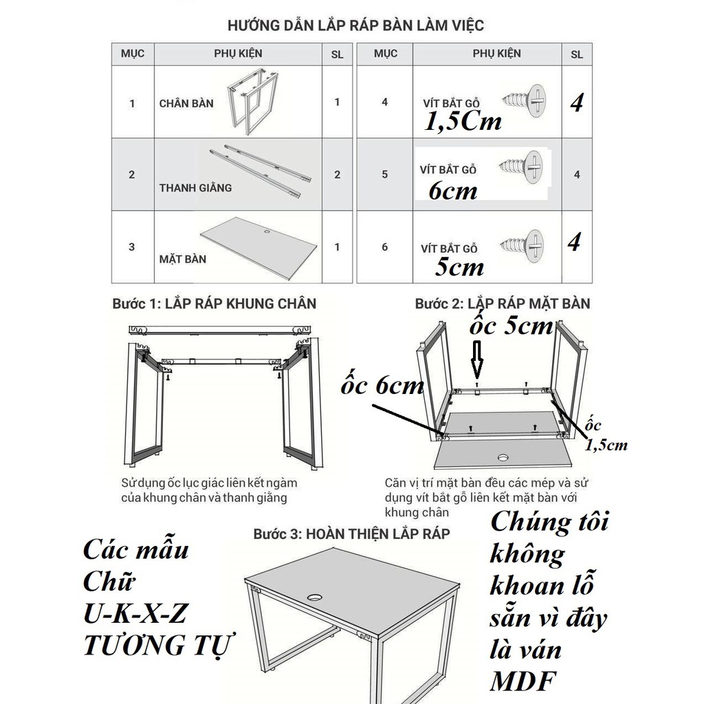 - Dưới mặt bàn có thanh giằng, đảm bảo chắc chắn khi sử dụng
