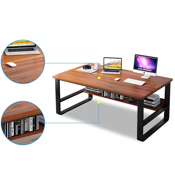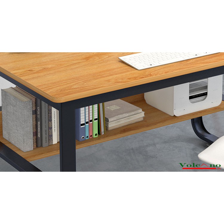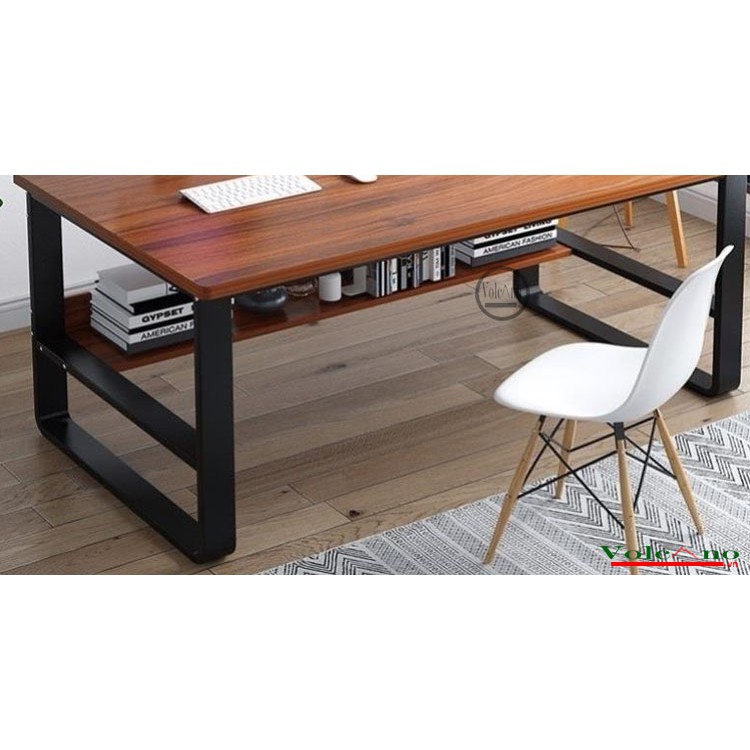 Bàn làm việc, học tập chân chữ U 2 tầng, bàn chân sắt mặt gỗ MDF chống ẩmBàn làm việc, học tập chân chữ U