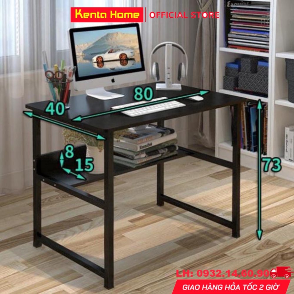 ✔️ Kích thước: Bàn dài 80cm, rộng 40cm,cao 75cm. Kích thước mặt kệ: 20x80cm